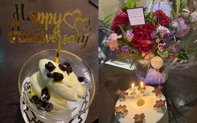 특히 이들 식탁에는 꽃다발과 '25'라는 숫자가 적힌 케이크가 눈길을 끈다.