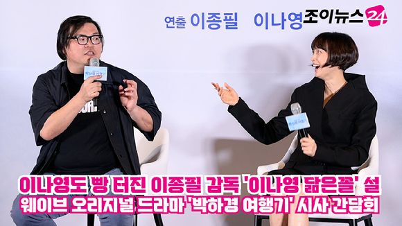 [조이뉴스24 문수지 기자] 이종필 감독, 배우 이나영이 지난 23일 오후 서울 용산구 CGV 용산아이파크몰점에서 열린 웨이브 오리지널 드라마 '박하경 여행기' 언론 초청 시사 간담회에 참석해 소감을 말하고 있다.