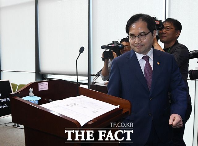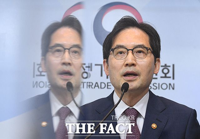 [더팩트ㅣ세종=이동률 기자] 한기정 공정거래위원장이 24일 오전 세종시 정부세종청사에서 이동통신 3사 표시광고법 위반행위 제재 결과를 발표하고 있다.