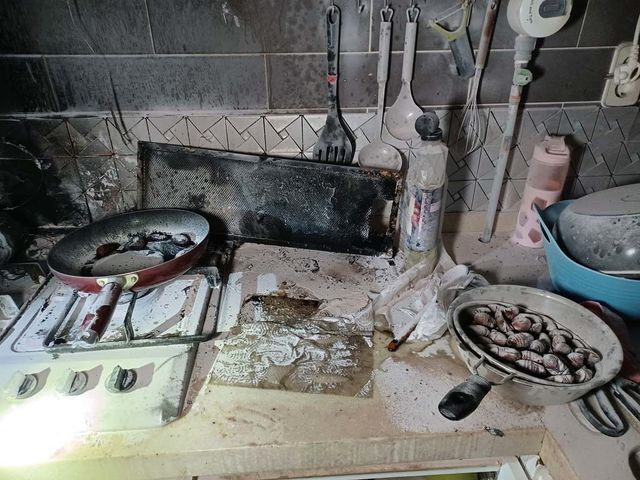 애벌레를 튀기던 주방. 하마터면 큰 화재가 발생할 뻔했다. / 부천소방서 제공