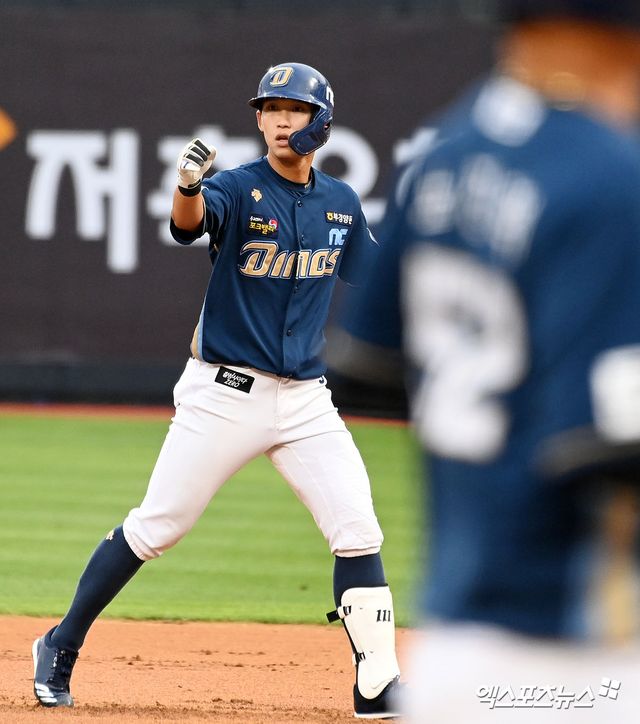 8회초 마지막 타석에서는 해결사로 나섰다. 팀이 2-1 한 점 차 살얼음판 리드를 지키고 있던 가운데 2사 1·2루 찬스를 그냥 지나치지 않았다. 롯데 셋업맨 구승민에 1타점 2루타를 려내 스코어를 3-1로 만들며 NC가 승기를 굳힐 수 있는 결정적인 한방을 쳐냈다.