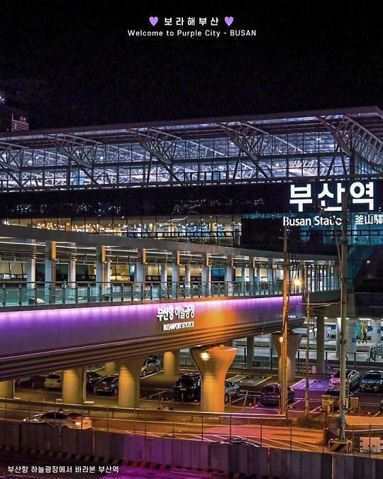 去年10月,BTS釜山演唱会举行期间,釜山站披上紫色。【图片提供 HYBE娱乐公司】