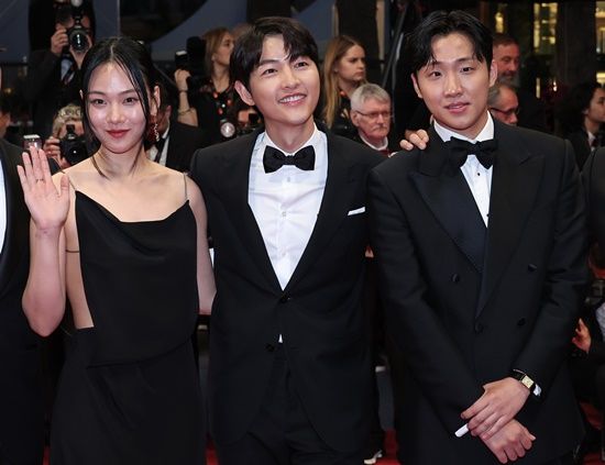 턱시도 차림으로 등장한 홍사빈과 송중기, 김창훈 감독, 그리고 매혹적인 블랙 드레스로 이목을 집중시킨 김형서는 각국 취재진들의 플래시에 여유로운 미소로 화답하며 칸의 밤을 물들였다.
