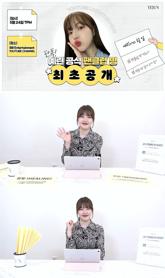 (엑스포츠뉴스 이슬 기자) 여자친구 출신 예린이 깜짝 유튜브 라이브를 통해 팬클럽 명을 공개했다.