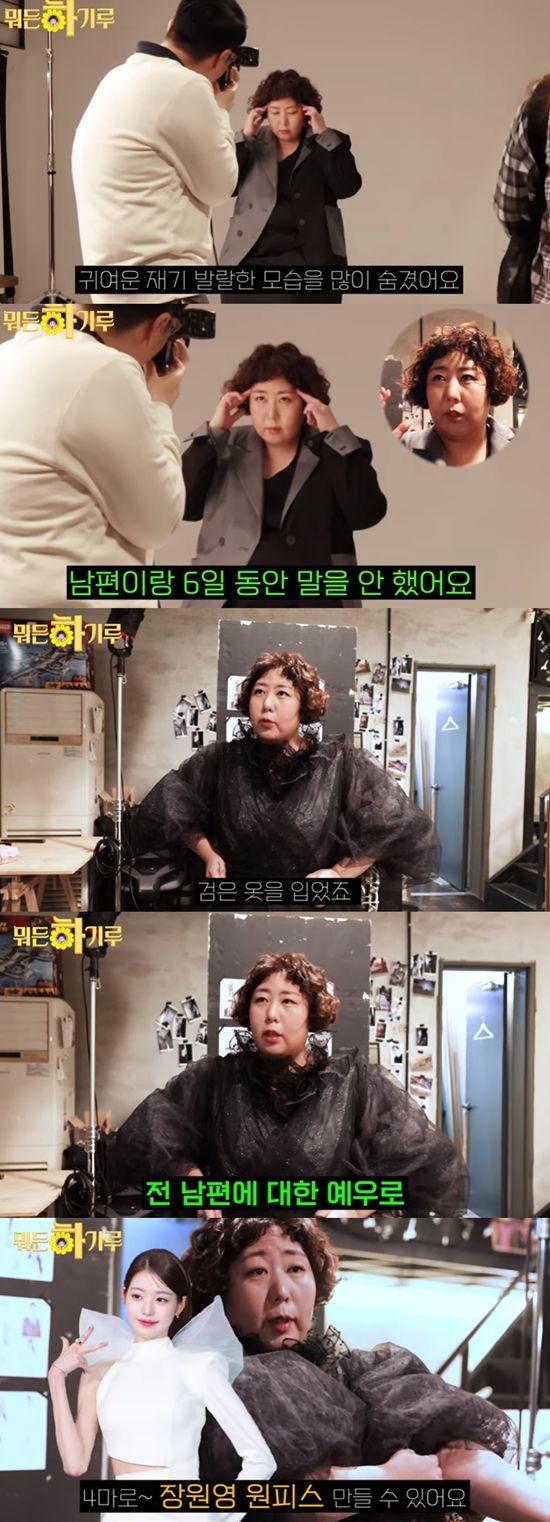 먼저 신기루는 회색, 검은색이 반반 섞인 재킷을 입고 시크함을 뽐냈다. 그는 "원래 사람들이 좋아하는 (저의) 귀엽고 재기발랄한 모습을 많이 숨겼다. 이 시크함을 연출하려고 남편이랑 6일 동안 말을 안 했다"고 이야기했다.