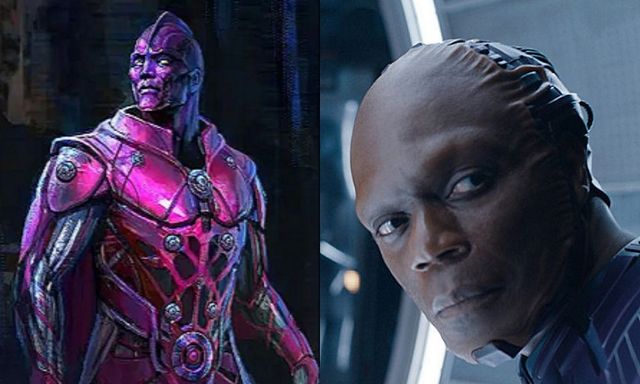 그러나 제임스 건 감독은 영화에서 하이 에볼루셔너리에게 갑옷이 아닌 비슷한 디자인의 평범한 보라색 의상을 입혔다. 또 완전히 기계적인 모습 대신에 약간의 보철 분장을 활용해 인간처럼 보이게 만들었다.