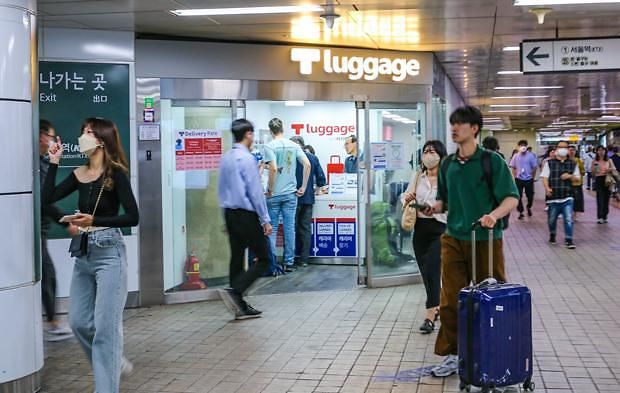 [서울역 1번 출구 부근에 있는 배송거점 ‘티-러기지’. =25일, 서울 (사진=NNA)]