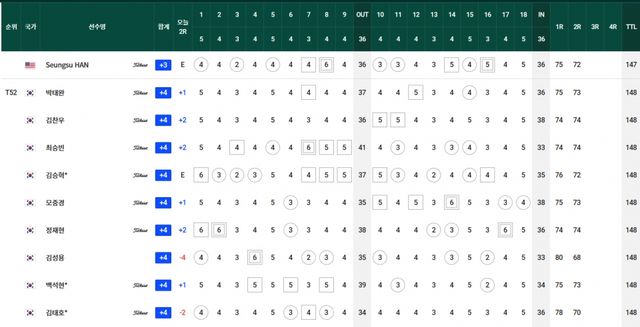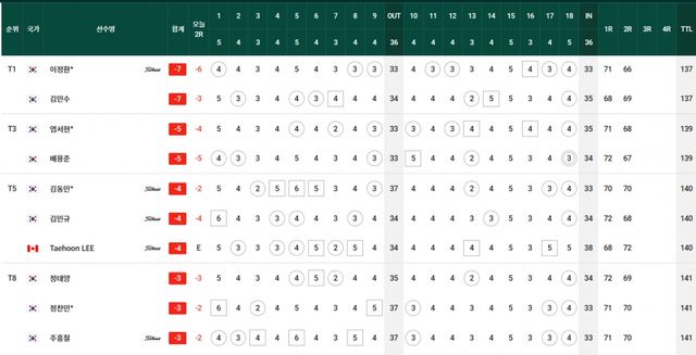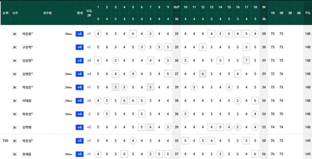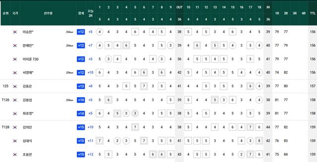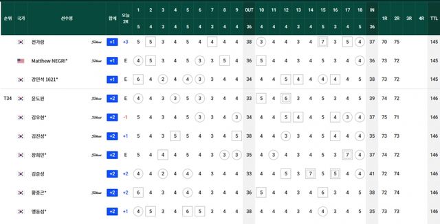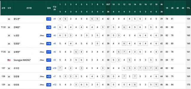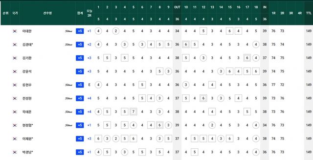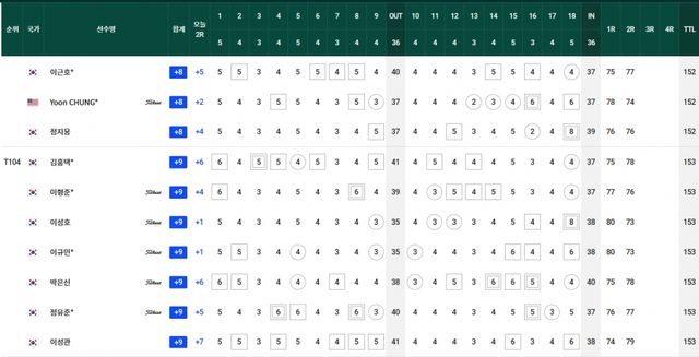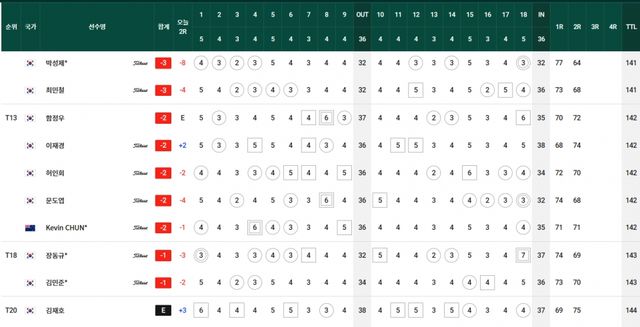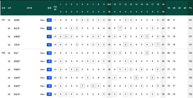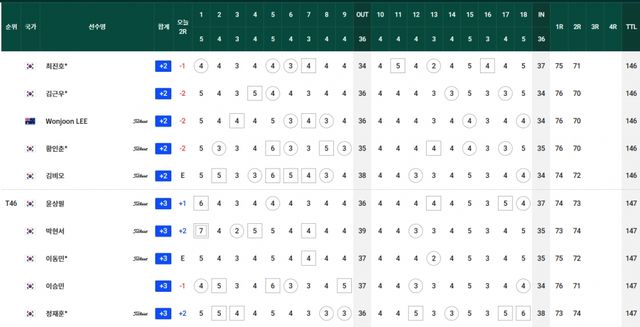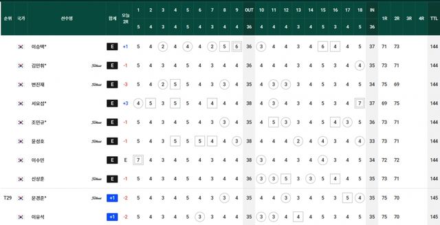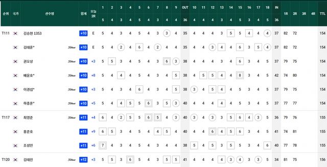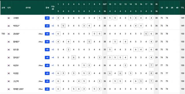 컷찰락 T69.김경태-옥태훈-현정협 +5, T83.양지호-마관우-고군택 +6, T104.이형준-박은신 +9, T111.김태훈 +10