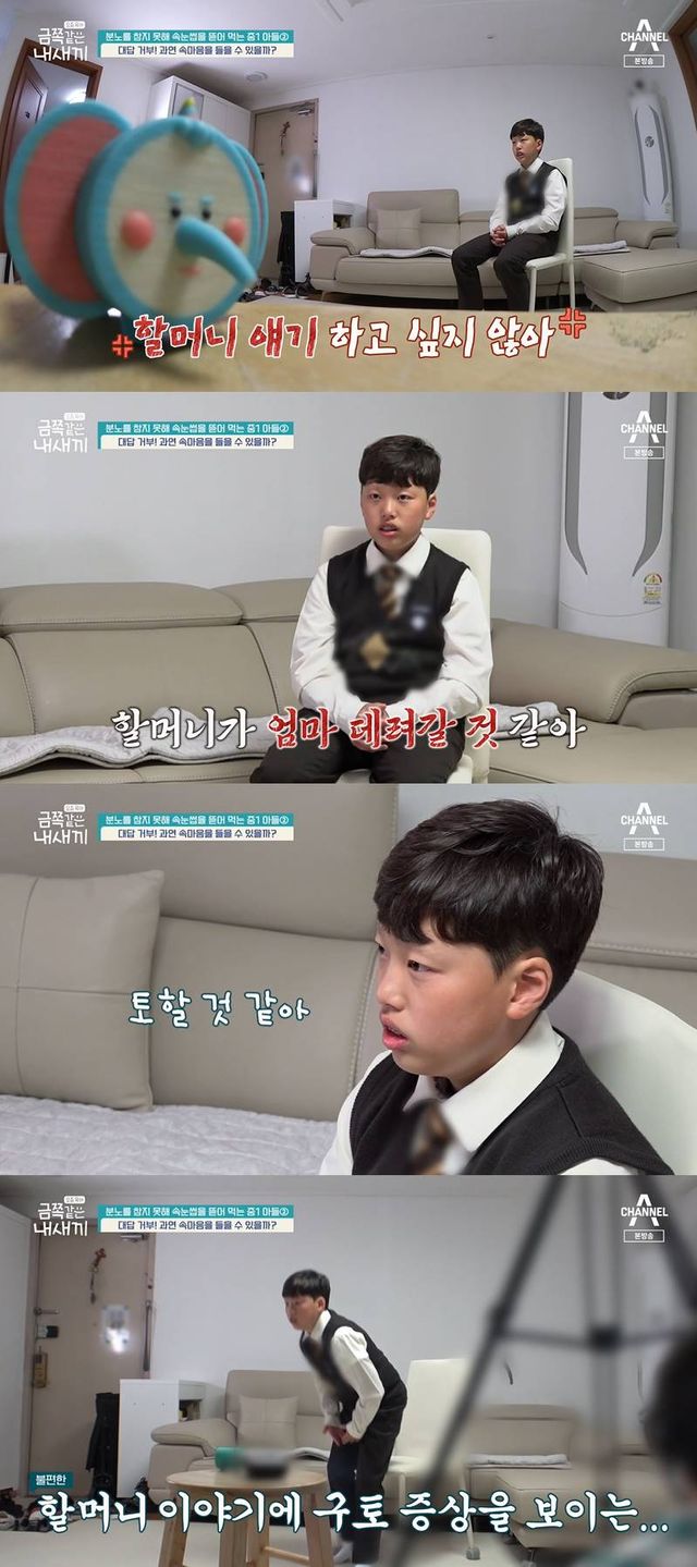 금쪽이는 할머니에 대한 질문을 하자 "할머니에 대해선 이야기하고 싶지 않아. 할머니가 엄마 데려갈 것 같아. 할머니를 없애버리고 싶어. 토 나올 것 같아"라며 구토 증상을 보였다.