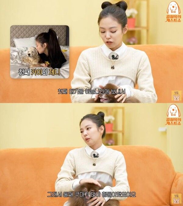 강형욱은 "쿠마를 키우면서 궁금했던 점이 있냐"고 물었고, 제니는 "제가 최근에 첫째 반려견을 하늘로 보냈다. 이후 둘째 쿠마가 많이 힘들어했다. 그래서 뭔가 제가 할 수 있는 위로가 따로 있나 알고 싶다"고 말했다.