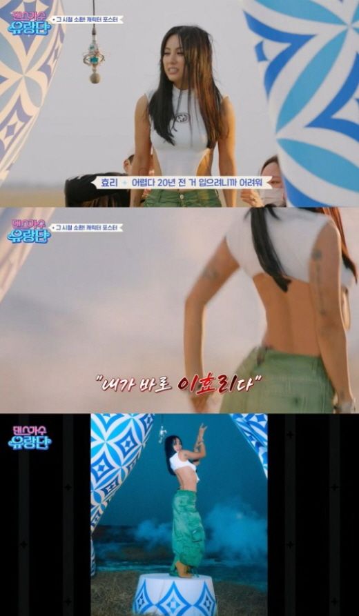 25일 첫 방송한 tvN '댄스가수 유랑단'에서 이효리는 2003년 발표 곡인 '텟미닛' 의상을 입고 프로필 사진을 촬영했다.