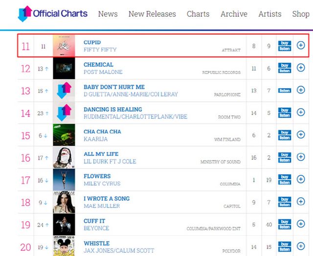 피프티 피프티 '큐피드', 英 싱글 차트 11위…9주 연속 진입