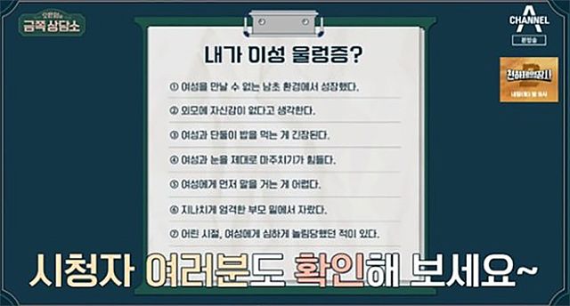 또 “여성에게 메시지를 보내고 답장이 바로 오지 않으면 삭제해 버린다”라며 “여성 분과 상황이 진전될 것 같으면 과장된 해석을 하게 된다”라고 자신의 문제점을 짚었다.