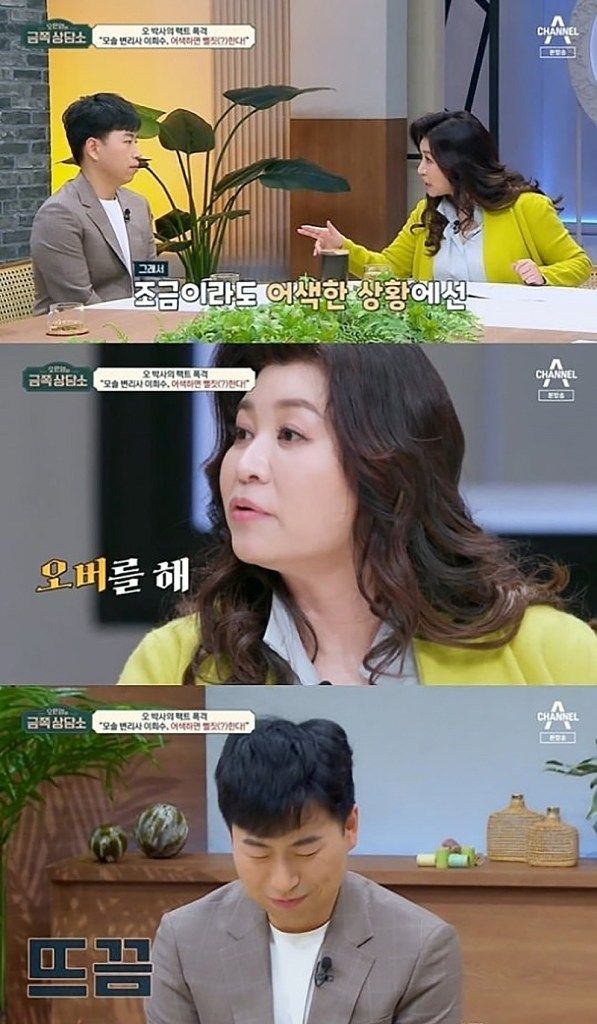 또 “침묵을 못 견뎌 조금이라도 어색한 상황이 생기면 오버를 한다. 약간 허튼짓을 하는 거다. 앞으로는 어색한 유머도 하지 말고 상대방 말에 집중하면서 들어주는 것도 방법이다. 안 그러면 성급해지고 오버하고 헛짓하게 된다. 사족을 붙이면 더 꼬이더라. 첨언 중에 이상한 비유를 쓰지 말라”라고 팩폭을 날렸다.
