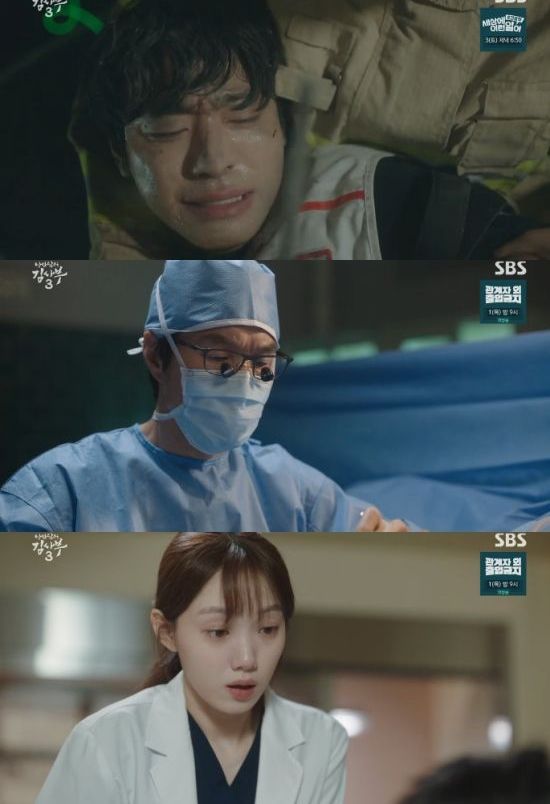 이날 서우진(안효섭)과 박은탁(김민재)은 붕괴 사고 현장에서 구조 작업을 펼치던 중 건물 안에 매몰됐다. 김사부는 붕괴 사고 현장으로 달려갔고, 서우진의 손목에 철근이 관통했다는 말을 듣고 충격에 휩싸였다.