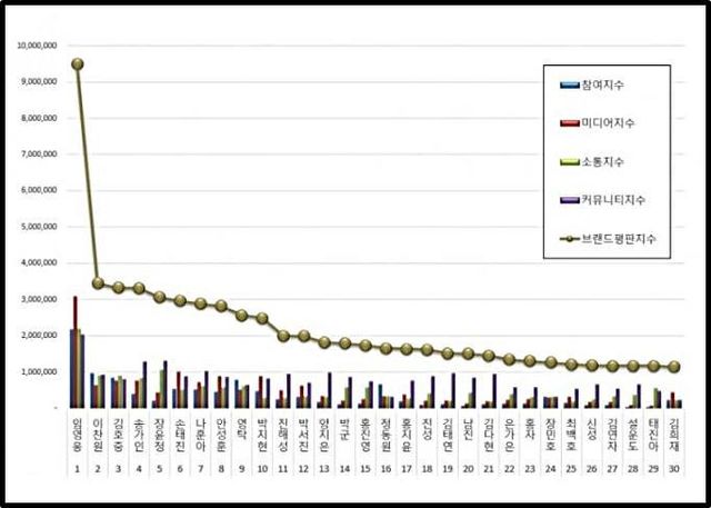 트로트 가수 순위 그래프 / 한국기업평판연구소 제공