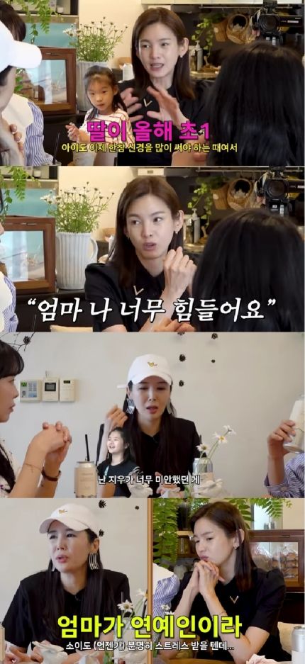 그러면서 "초등학교 1학년 때 이미지가 6학년까지 간다"면서 "딸한테 미안했던 게 원래 딸 지우가 1학년 때도 발표를 잘했다. 선생님이 지우가 보여서 발표를 시킨 건데 '선생님이 걔만 이뻐해'라는 소문이 들려서 속상하더라"라며 "연예인 자식들이 주목받는 것도 있고, 나도 모르게 '튀지 않게 행동해'라고 애를 잡았다. 근데 지우가 쉬는 시간에 맨날 책만 본다고 하더라. 원래는 밝은 아이였는데"라며 속상한 마음을 드러냈다.