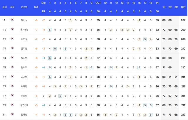 공동선두였던 박지영은 합계 6언더파 210타로 김희지, 홍지원과 공동 4위에 올랐다.