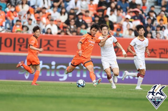 원정 팀 강원은 3-4-3-으로 맞선다. 유상훈이 골키퍼 장갑을 낀다. 김영빈, 이웅희, 윤석영이 수비를 형성하고 강지훈, 서민우, 한국영, 정승용이 중원을 구성한다. 김대우와 양현준, 박상혁이 최전방에서 득점을 노린다.