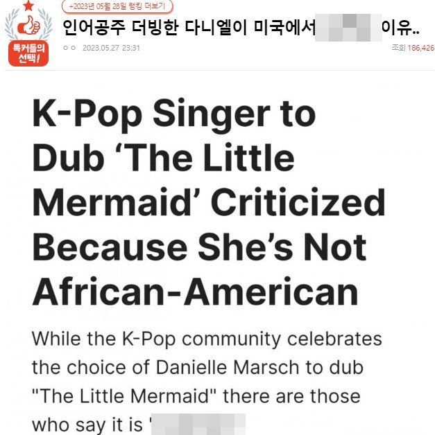 지난 27일 온라인 커뮤니티 네이트판에는 일부 해외 매체와 해외 네티즌이 다니엘이 '인어공주' 에리얼을 더빙한 것과 관련해 “한국은 모든 분야에서 피부가 하얀 사람을 우선시하는 나라”, “더빙을 피부가 하얀 여자 아이돌이 했다”며 역차별을 하고 있다는 글이 올라왔다.