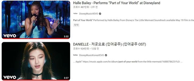 할리 베일리가 부른 영화 '인어공주' 주제가보다 높은 조회수를 기록한 다니엘