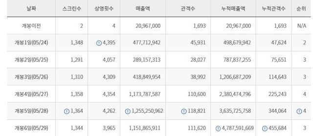 영화 '인어공주' 국내 관객 / 영화관입장권통합전산망