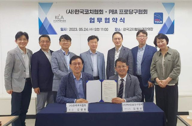 PBA는 “사단법인 한국코치협회와 업무협약(MOU)을 체결했다”고 30일 밝혔다. 협약식에는 PBA 김영진 전무이사와 장재홍 사무총장, 황득희 선수협회장, 한국코치협회 김영헌 회장, 최용균 이사, 최동하, 김완태 코치 등이 참석했다.