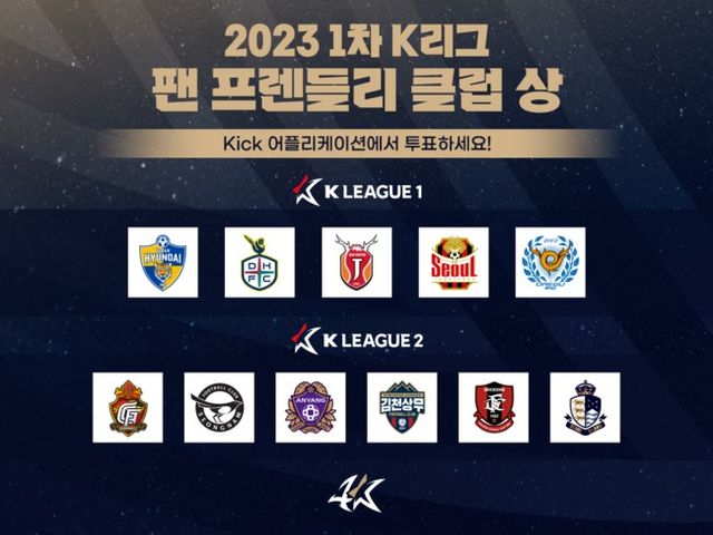 [인터풋볼] 신인섭 기자= K리그 구단 중 팬 친화적 활동을 가장 적극적으로 펼친 구단은 어디일까. 2023년 1차 K리그 ‘팬 프렌들리 클럽상’ 팬 투표가 30일(화)부터 1일(목)까지 3일간 실시된다.