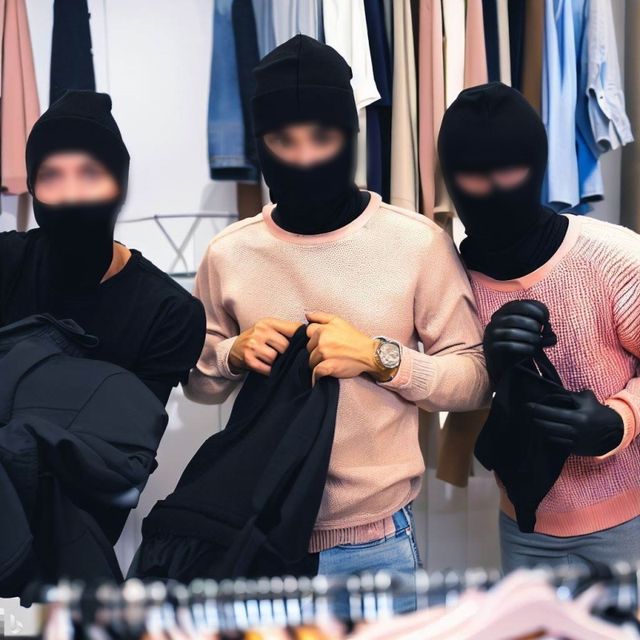 의류 매장에 침입한 복면을 쓴 강도의 모습을 AI 이미지 생성 프로그램 '빙 이미지 크리에이터'를 통해 가상으로 구현한 이미지 / MS Bing Image Creator