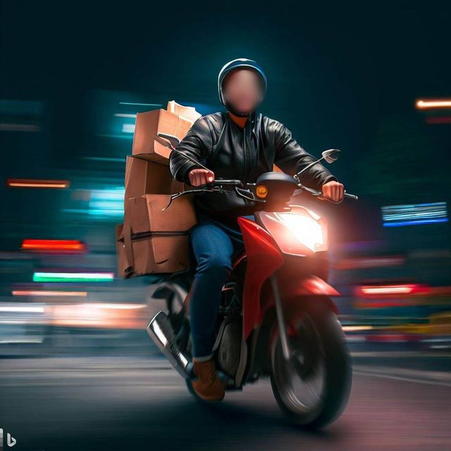 기사 내용을 바탕으로 생성한 자료사진. 오토바이를 타고 세게 달리는 배달기사. / 빙 이미지 크리에이터(AI 이미지 생성 프로그램)