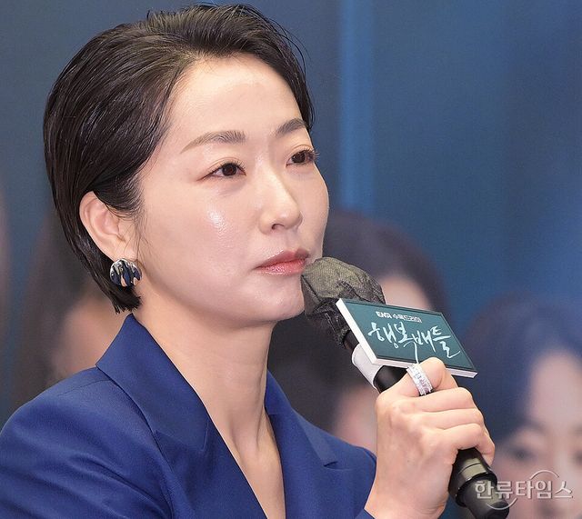 배우 우정원이 31일 오후 서울 마포구 상암동 스탠포드호텔에서 열린 ENA 수목드라마 '행복배틀' 제작발표회에 참석해 취재진의 질문에 답하고 있다.