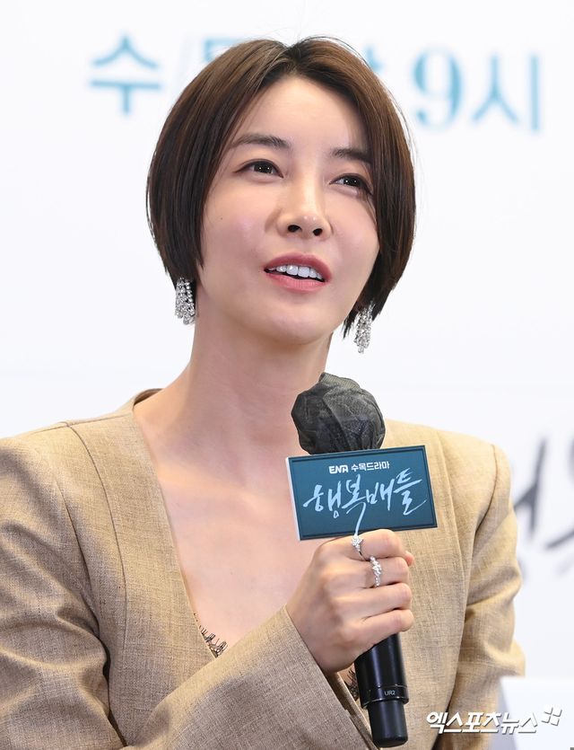 진서연은 31일 서울 마포구 스탠포드호텔 서울 그랜드볼룸에서 진행한 ENA 새 수목드라마 '행복배틀' 제작발표회에서 "SNS에 대한 부정적인 이야기가 많은데 SNS의 기능이 행복한 모습을 보이기 위해 만들어진 콘텐츠라고 생각한다"라고 말했다.