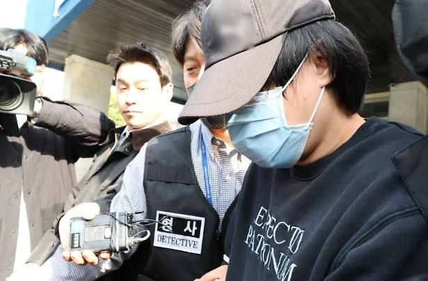 강남 학원가 '마약음료' 사건 일당이 피해 학부모에게 건 협박전화 번호를 중계기를 이용해 국내 휴대전화 번호로 조작해준 김모 씨가 지난달 17일 오전 서울 용산경찰서에서 검찰로 송치되고 있다. [사진=연합뉴스]