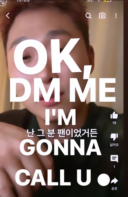 탑은 31일 오후 래퍼 스윙스의 라이브 방송을 녹화한 한 유튜브 영상을 캡처하며 "OK, DM ME. I'M GONNA CALL U"라는 글을 남겼다.