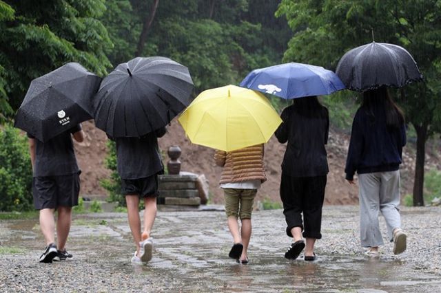 이날 낮 12시~오후 6시에는 제주·전남·경남 남해안 외의 남부 지방으로, 오후 6시~밤 12시에는 충청 남부까지 비가 확대될 것으로 보인다.