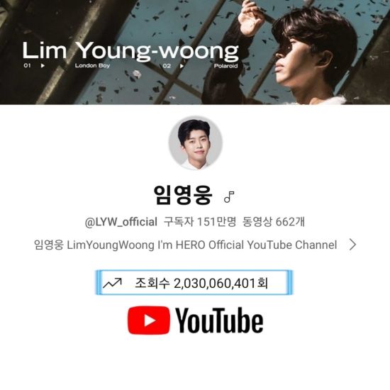 1일 기준, 임영웅의 공식 유튜브 채널인 '임영웅'은 총 조회수 20억 3천만 뷰를 돌파했다.