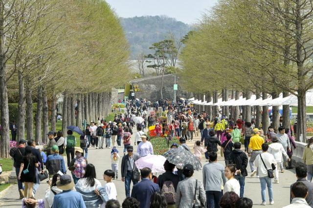 박람회의 핵심 공간인 ‘오천그린광장’과 ‘그린아일랜드’는 각각 저류지와 아스팔트 도로였다. 저류지를 정원으로 만들고 어린이놀이터, 바닥분수, 1.2km에 달하는 마로니에길 등을 더해 오천그린광장으로 재탄생시켰다. 또 도심을 가로지르는 동천변 강변도로 일부 구간을 광활한 정원인 그린아일랜드로 만들었다. 노 시장은 “재해시설인 저류지를 5만 평의 사계절 잔디광장으로 만들었고, 차만 다니던 아스팔트 도로는 푸른 정원이 됐다”며 “캐나다 부차드가든, 네덜란드 코이켄호프정원이 아쉽지 않을 만큼 아름다운 정원과 광장을 조성해놨다”고 했다.