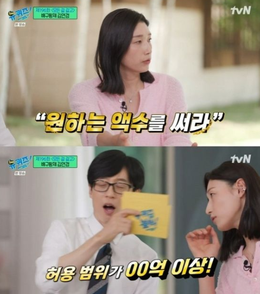 유재석은 “백지수표에 막 써도 되는 거예요? 아니면 어느 정도 범위가 있는 거죠?”라고 물었고 김연경은 “허용되는 범위가 조금 넓었다."고 말했다.
