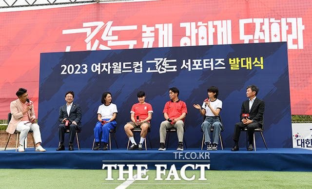 여자월드컵 고강도 서포터즈로 선정된 배우 박선영과 정혜인, 김태영 전 축구 국가대표(왼쪽 두 번째부터).