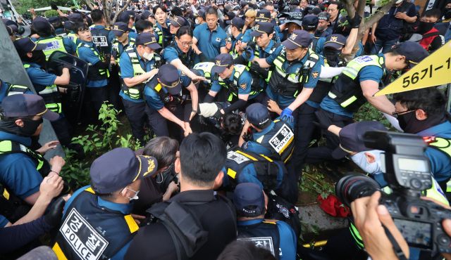 그는 "'의도가 있지 않나' 하는 의심까지 생기게 하는 이 야만적인 폭력 현장을 보고 우리 사회가 참으로 오래 전 과거로 되돌아가고 있다는 생각이 들었다"며 "과도하게 폭력적으로 진압할 필요 없는데, '폭력적 저항을 유도하려 한게 아닌가' 의심하는 분들이 있다. 그 의심이 전혀 타당치 않다고 하기 어려울 만큼 이해할 수 없는 과도한 경찰폭력이었다"고 주장했다.