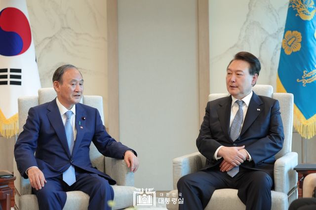 윤석열 대통령과 스가 요시히데(菅義偉) 前 일본 총리는 한일, 한미일 협력 강화에 뜻을 함께했다.