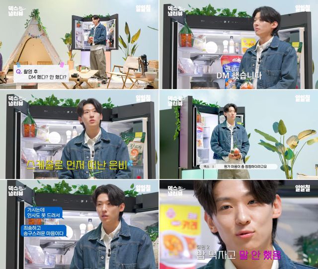 '촬영 끝나고 DM을 보냈냐'는 질문에도 "했다"고 인정했다. 덱스는 "제가 원래 모든 냉터뷰 게스트분들과 갈 때 담소를 나누고 마무리하는데 유일하게 권은비 님이랑만 못했다. 마음이 좀 찜찜했다"고 설명했다.