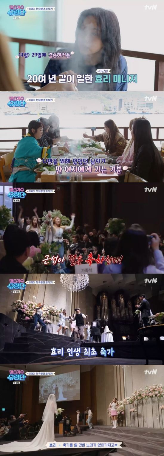 특히 멤버들은 맛집에서 함께 식사했고, 자연스럽게 과거 일화들을 떠올렸다. 이효리는 "나랑 20년 같이 일한 근섭 실장 결혼한다. 뺏기는 기분이 드는 건 뭐냐. 나만을 위해 있었던 남자가 다른 여자에게 가는 것 같은 기분이 뭐냐. 걔 어록이 있다. 우리 누나 3초 이상 쳐다보면 죽여버리겠다. 그 정도로 나를 엄청 케어했다"라며 회상했다.