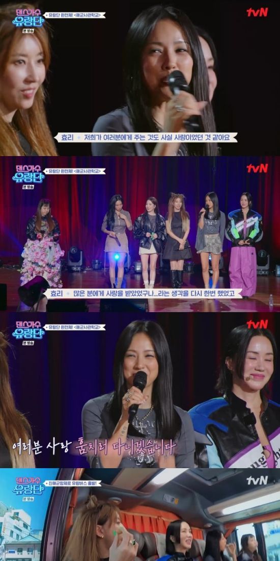 1일 방송된 tvN '댄스가수 유랑단'에서는 김완선, 엄정화, 이효리, 보아, 화사가 군항제 폐막식에서 특별 공연을 펼친 장면이 전파를 탔다.