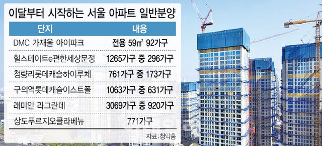 [이데일리 이윤화 기자] 정부의 부동산 규제 완화에 더해 대출금리 상승도 멈추고 최근 서울 일부 지역을 중심으로 집값도 반등세로 돌아서면서 청약 수요가 증가하고 있다. 이에 건설사들은 아파트 분양을 서두르고 있다. 이달 전국 총 3만6000여가구 중 서울에서만 정비사업지 등을 포함해 총 6개 단지에서 분양을 진행한다.