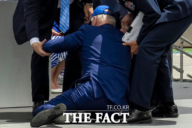 [더팩트ㅣ이새롬 기자] 올해 80세로 미국 현역 최고령 대통령인 조 바이든 대통령이 공식 행사 중에 또 다시 넘어졌다.