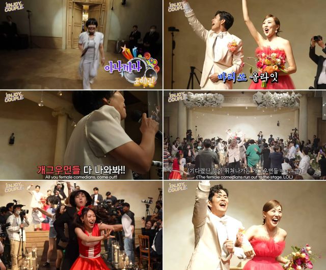 지난달 31일 엔조이커플이 운영하는 유튜브 채널에는 ‘개그우먼들이 뒤집어놓은 엔조이커플 레전드 결혼식 2부 최종화 ep.3 Wedding day”라는 제목의 영상이 올라왔다.