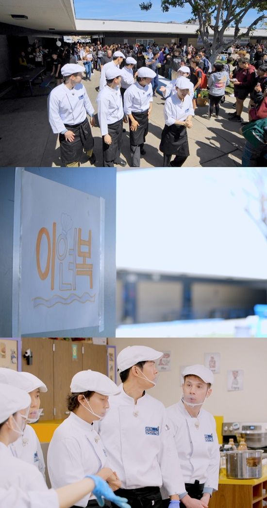 급식을 준비하던 멤버들이 배식 동선을 확인하기 위해 잠시 밖으로 나온 가운데 이연복 셰프를 발견하고 수백 명의 인파가 몰려드는 것. 미국 학생들은 방탄소년단(BTS) 진의 절친으로 알려진 이연복 셰프의 등장에 연신 BTS를 외치며 열띤 환영을 보냈다는 후문이다.