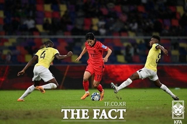 김은중 감독이 이끄는 U-20(20세 이하) 대표팀이 아르헨티나 산티아고 델 에스테로 스타디움에서 열린 2023 FIFA U-20 월드컵 16강전에서 이영준 배준호 최석현의 연속골로 에콰도르에 3-2로 이긴 경기의 주요 장면을 대한축구협회(KFA) 제공 사진으로 재구성했다.