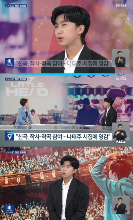 임영웅은 2일 KBS '뉴스9'에 출연해 "나태주 시집을 읽으며 영감을 받았다. 미국에서 이런저런 생각을 하고, 또 풍경을 보다가 가사가 떠올랐다”라고 말했다.